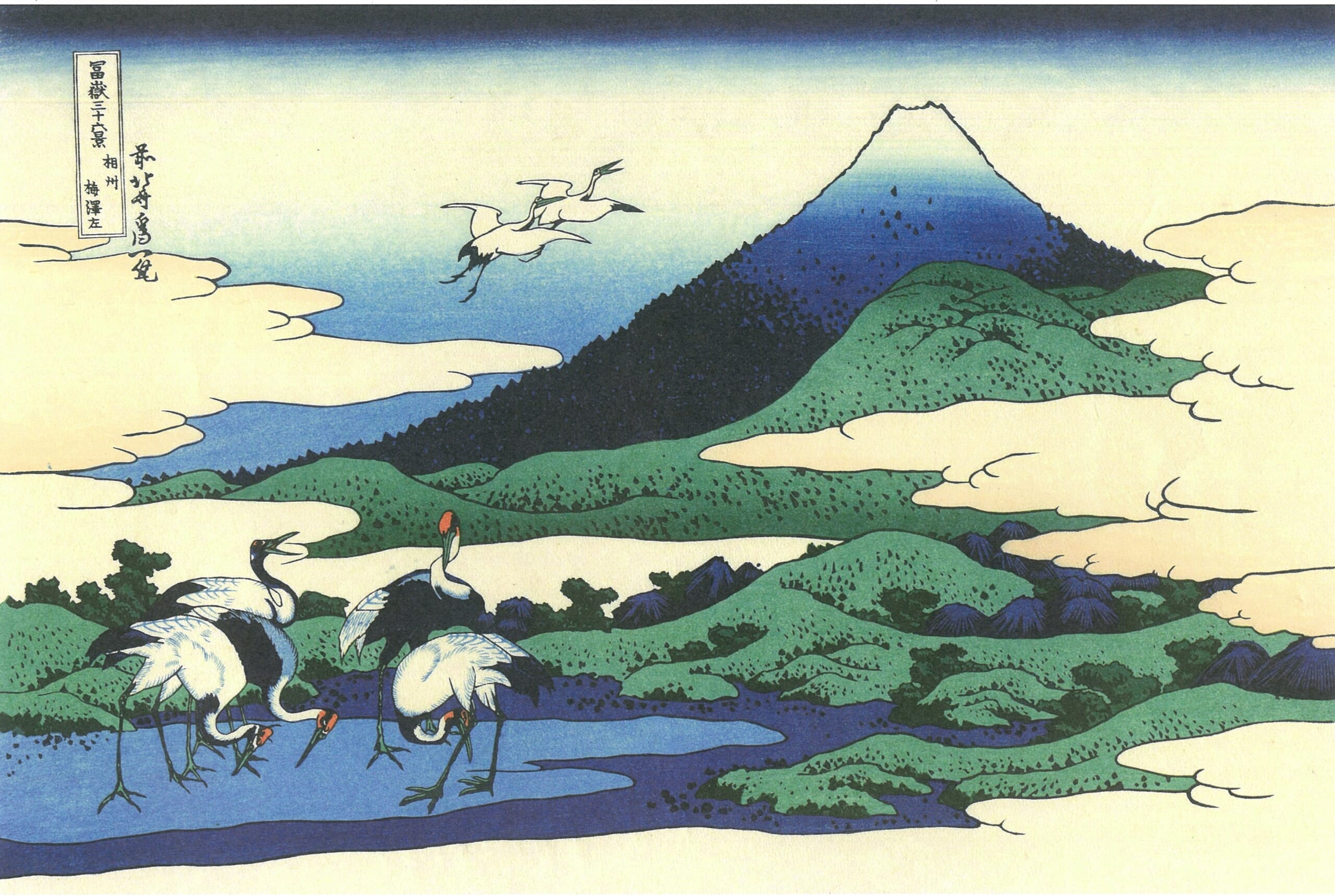 葛飾北斎の浮世絵「富嶽三十六景」の「下目黒」について説明する。