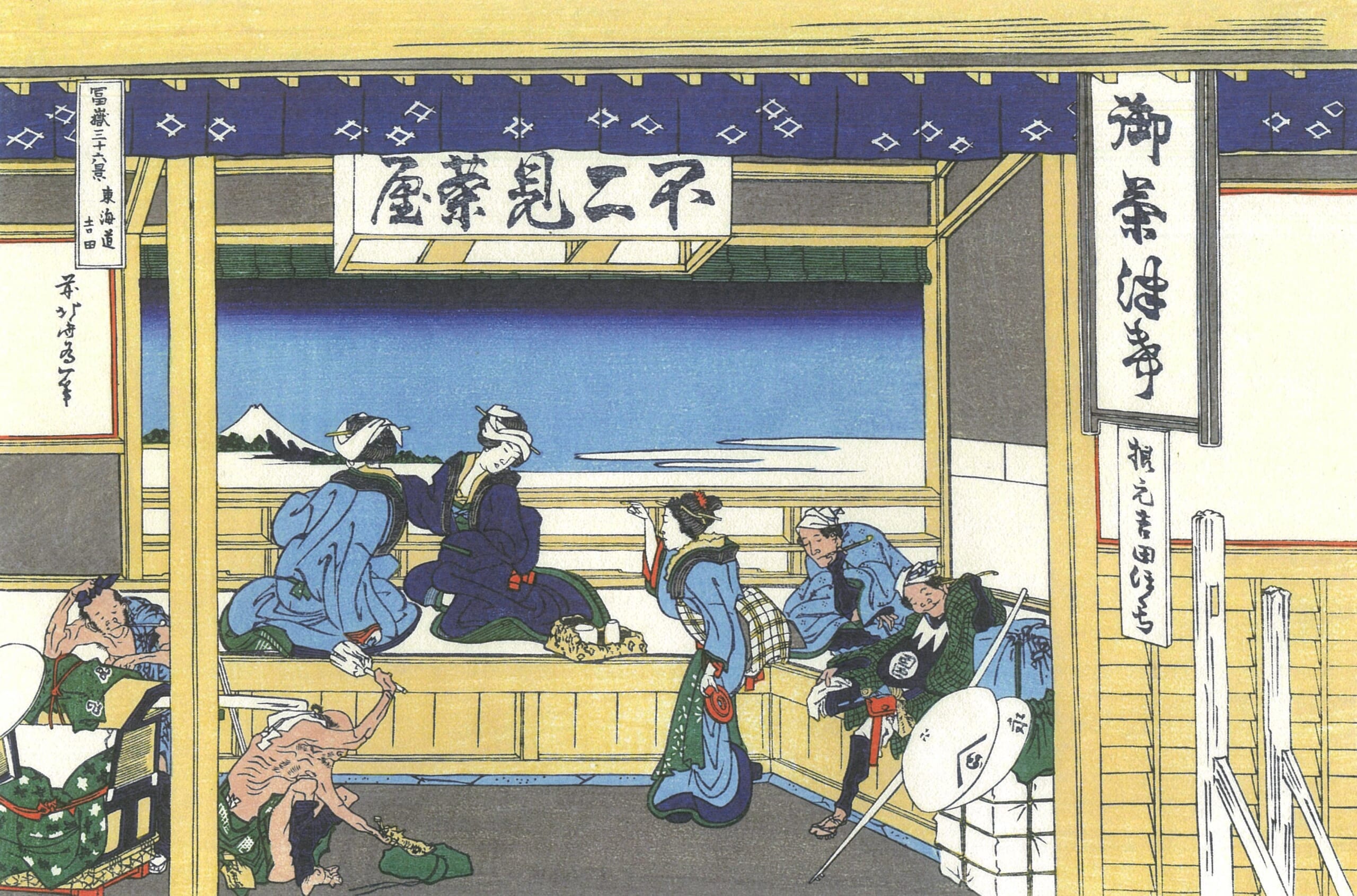 茶店は密の状態で混雑し女中は慌ただしく膳を運んでいる。
