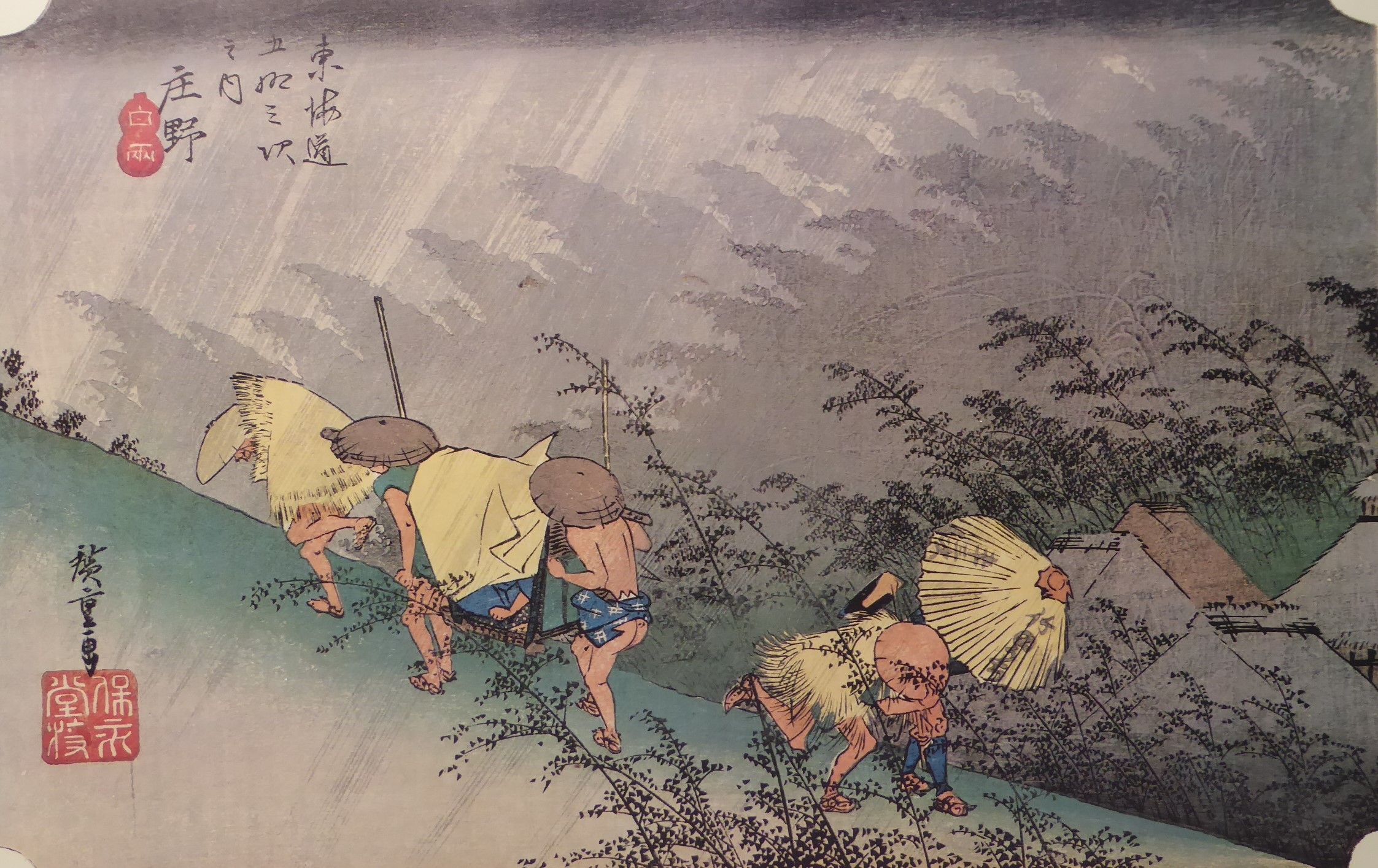 安藤広重の東海道五十三次では「蒲原」に次ぐ雪景の代表作です。