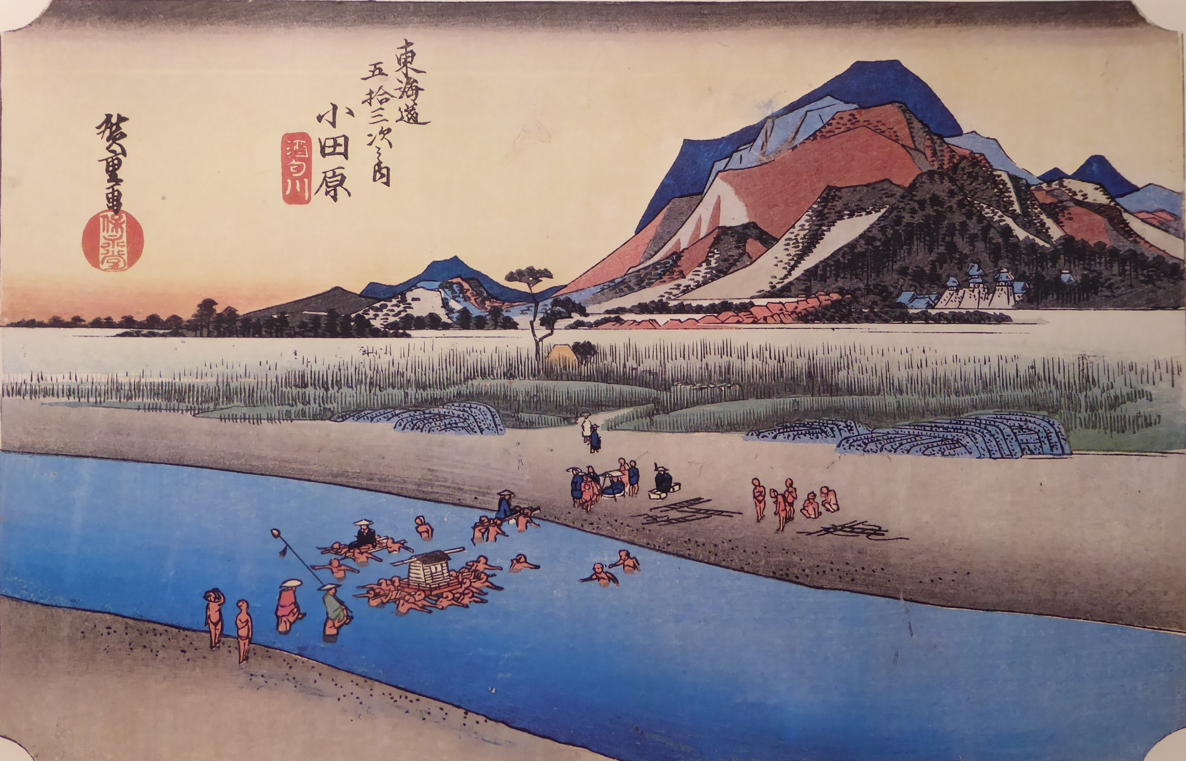 箱根を下ってきた人は、酒匂川の渡しを前に、その疲れを休めるために小田原に宿泊します。