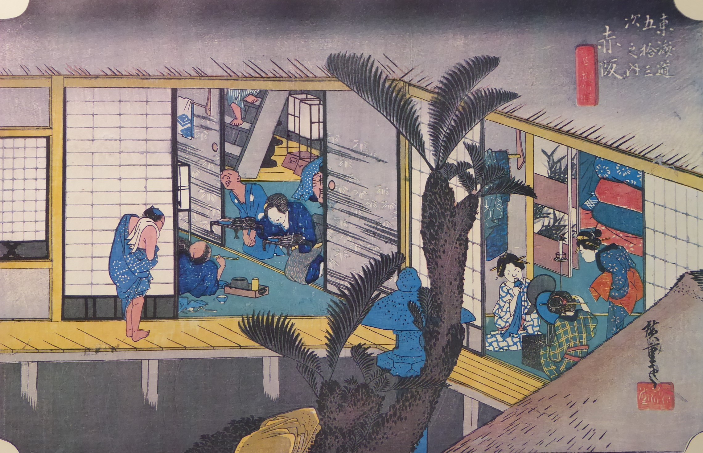 宿の壁に版元の「山田や」の文字が描かれています。