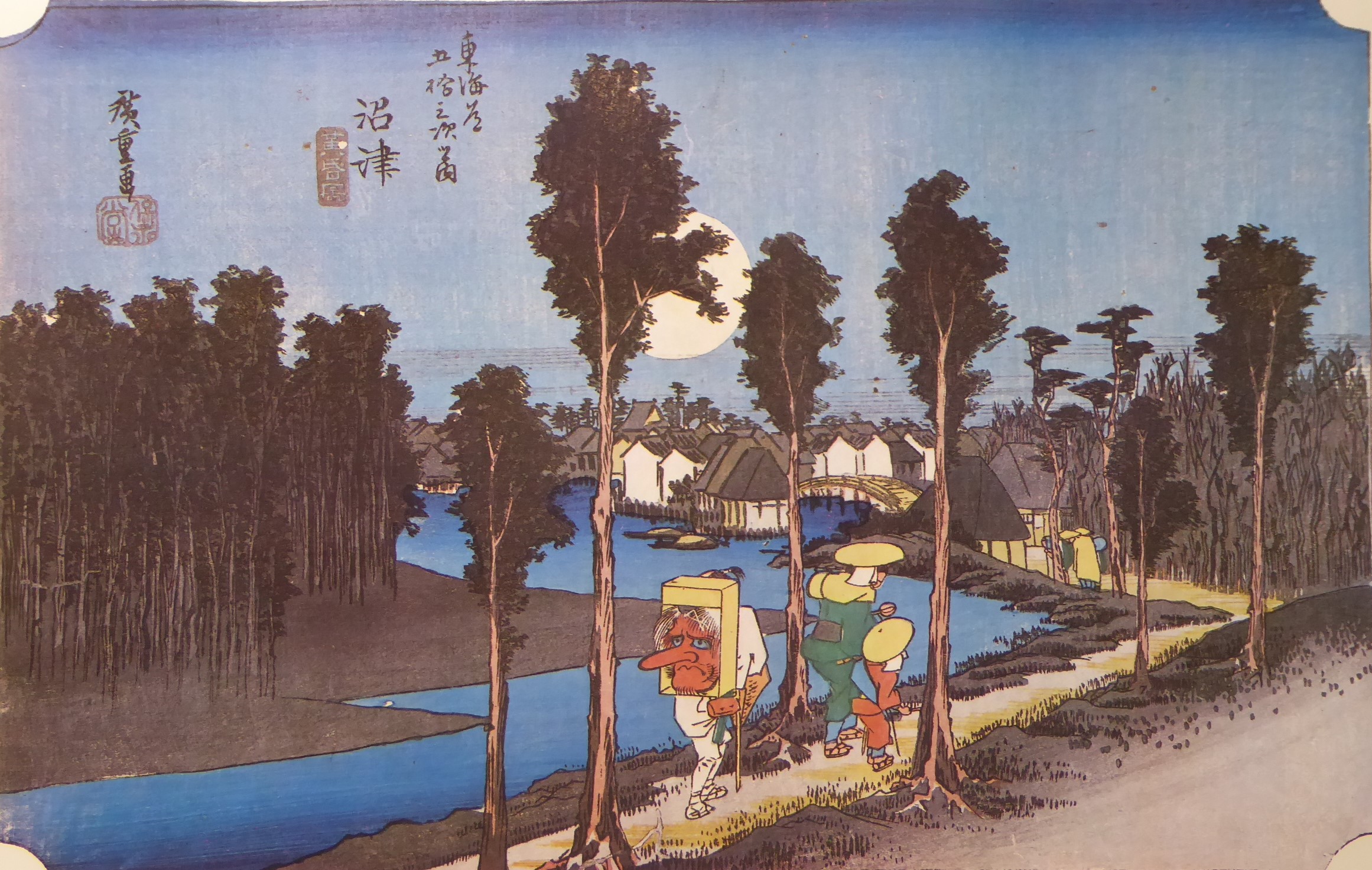 手前の駕篭の一行は三島から箱根方面へ向かっています。